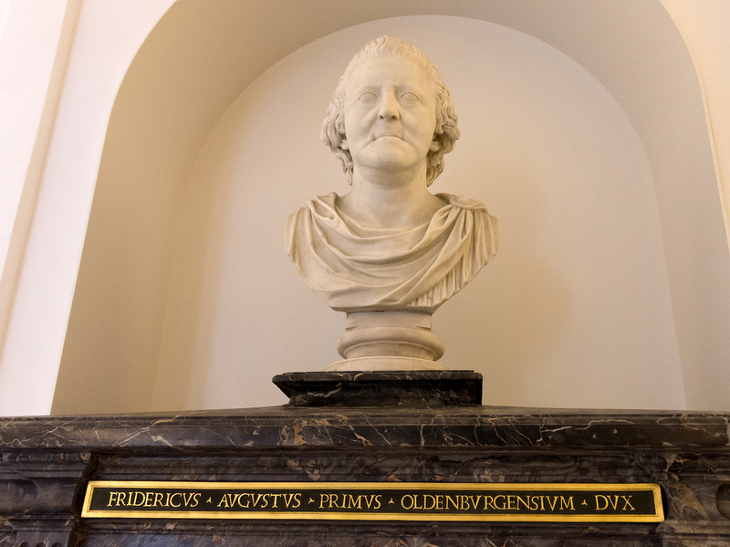 1774 wurde die Grafschaft durch Kaiser Josef II. in den Reichsfürstenstand erhoben und damit zum Herzogtum Oldenburg. Erster Herzog von Oldenburg wurde Friedrich August von Schleswig-Holstein-Gottorf. Ihm folgte Großherzog Peter Friedrich Ludwig, dessen Standbild auf dem Marktplatz zu sehen ist.